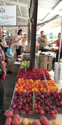 The market proudly brings fresh produce, farm products, prepared food, beverages, and artisan items to the community all year. Our 106-year-old market is producer-only, featuring 130 vendors from Michigan. At market you will find: seasonal fruit and vegetables, mushrooms, herbs, microgreens, fresh eggs, pastured meat and poultry, fish, flowers, plants, seedlings, honey, maple syrup, cheese, bread, jam, pickles, hot sauce, pastries, gluten-free and allergen-free baked goods, apple cider, coffee, tea, juice, mead, prepared food, candles, body care products, jewelry, art, clothing, textiles, ceramics, cutting boards, gifts, and more!