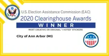 The City Clerk's Office, with support from the Ann Arbor Public Art Commission, sought out local artists, including students, to design the City's 2020 "I Voted" stickers. The three sticker designs below were selected from juried finalists by public voting in early 2020.