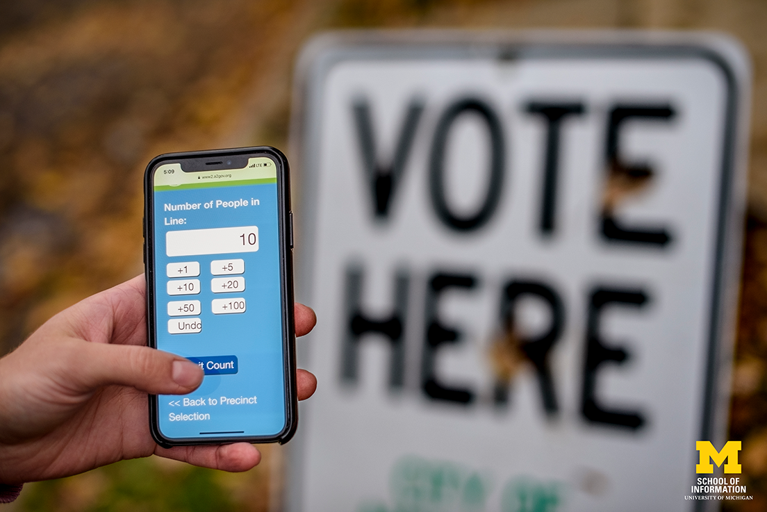 A: Ann Arbor voters can use the online Election Day line tracker to check the real-time number of people waiting in line at their polling places and view estimated wait times. Line counts and projected wait times will be reported in real time by the election inspectors at each polling place. The line tracker also includes images of each polling place as well as links to maps and directions.