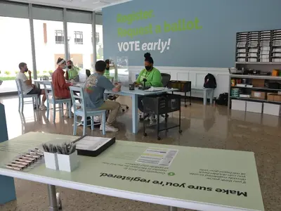 A one-stop-shop for students, staff, and faculty to check their registration information, register to vote, and request an early ballot, the satellite offices provided an easily accessible location for students and residents in and around the University campuses! Beginning in 2024, the satellite offices have expanded to include early voting and an Election Day Vote Center!