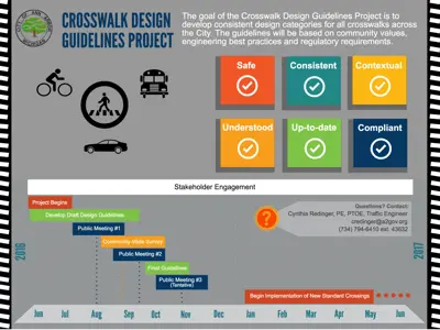 This overview of the crosswalk design guidelines (PDF) for controlled and uncontrolled crosswalks is a product of this project.