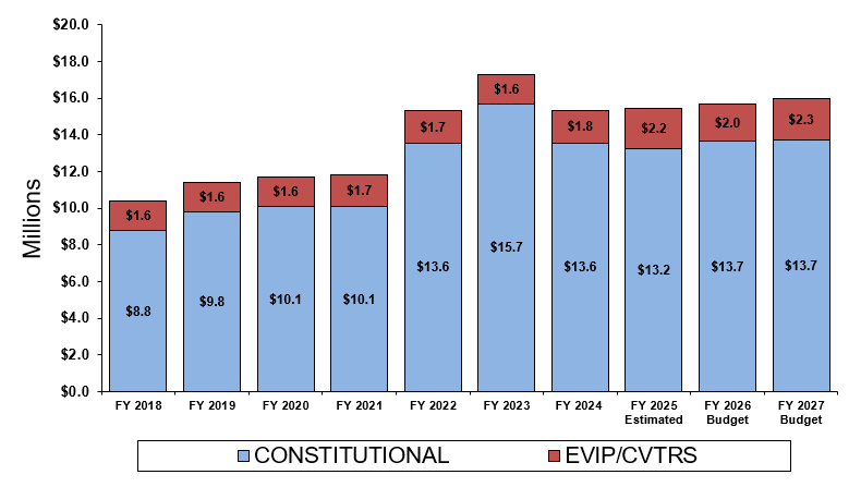 - Constitutional - 15 percent of the 4 percent gross collections of the state sales tax and distributed based on the population of the municipality;