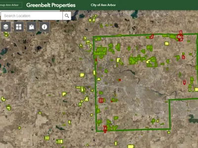 The Greenbelt program is an innovative land preservation program that has protected thousands of acres of farmland and open space around the city of Ann Arbor. The program makes use of millions of dollars from grants, landowner donations, and other locally funded programs. View an interactive map of the Greenbelt properties.