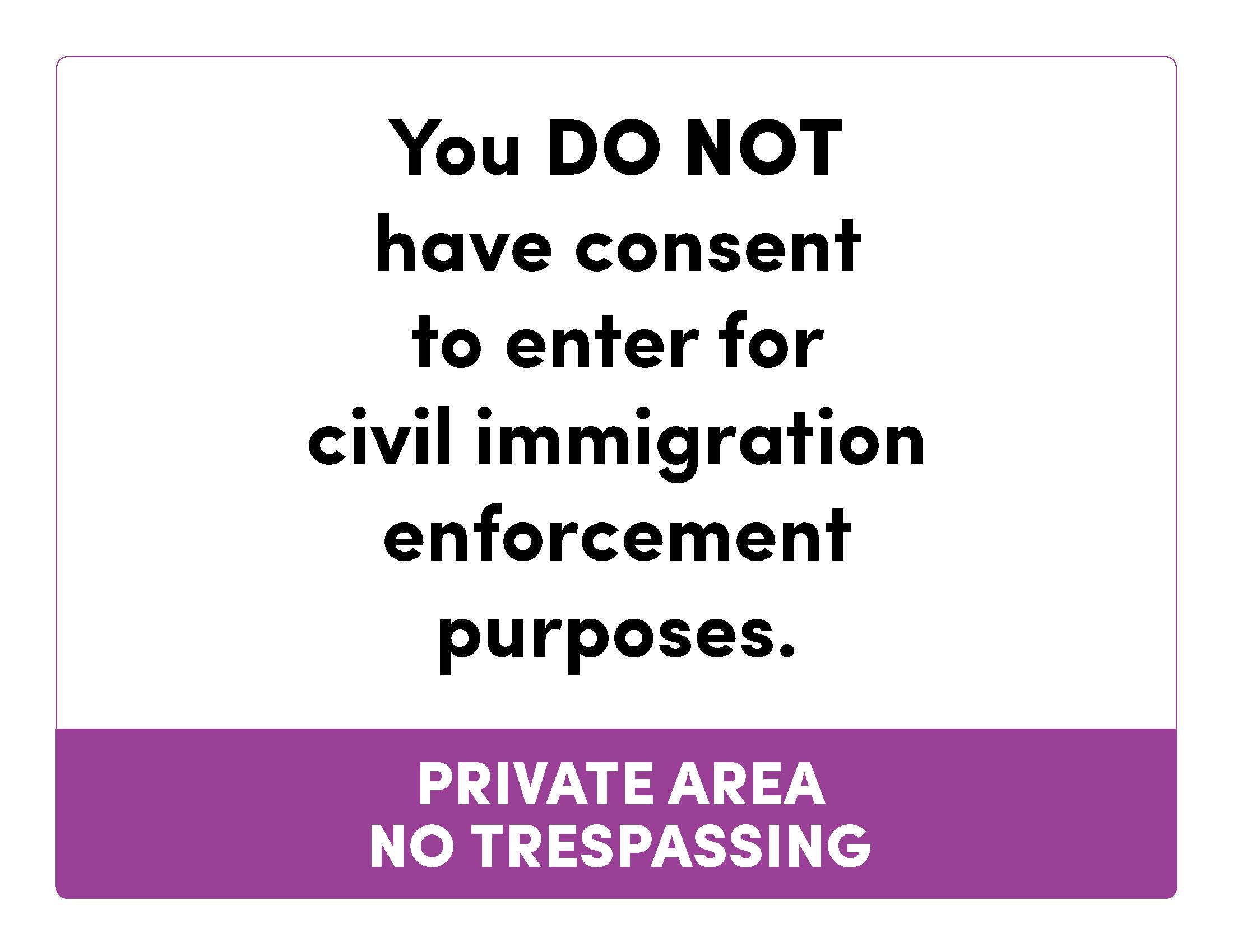 “You DO NOT have consent to enter for civil immigration enforcement purposes. Private Area. No Trespassing.”