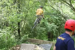 Tuebingen Park is home to one of the two bike parks in Ann Arbor parks! This bike park features a dirt/off-road pump track and several downhill dirt jump lines with doubles, tabletops, shark fins, hips, rollers, and berms. A dirt jumper's playground, the Tuebingen Bike Park draws riders from across southeast Michigan! Tuebingen also features a segment of downhill/uphill single-track MTB/XC trail connecting to Stapp Nature Area, and the park is near Traver Creek Nature Area, Leslie Park, Dhu Varren Park and several other parks. Please note this rider built course is for more experienced riders and is ride at your own risk. View Tuebingen Bike Park rules, risks, and best practices. For any maintenance or safety concerns related to the condition of the course, contact parks staff at a2parks@a2gov.org.