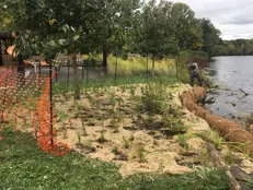 In 2022, GIVE 365 started shoreline restoration projects in partnership with the Washtenaw County Water Resources Commissioner's Office at Gallup Park and Island park. These restoration projects included removing some of the existing non-native vegetation. Erosion-control material made from compostable straw and coconut was installed to cover the ground. At Gallup Park, a coconut coir log was installed in the water, along the shoreline. Native plants were planted into these materials, along with native seed that was scattered over the area in both parks. These areas will be monitored to determine successfulness and additional shoreline areas will be considered for restoration.