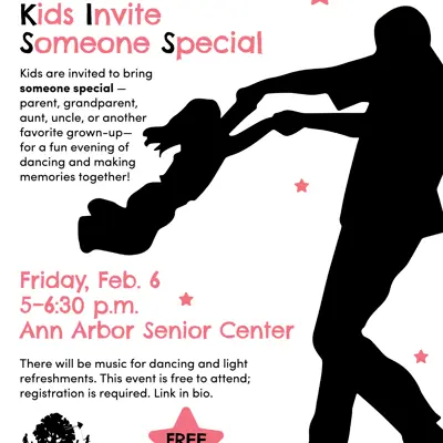 Kids Invite Someone Special to this Valentine's Day themed dance! This event is for dads and daughters, moms and sons, grandkids and grandparents or the whole family!