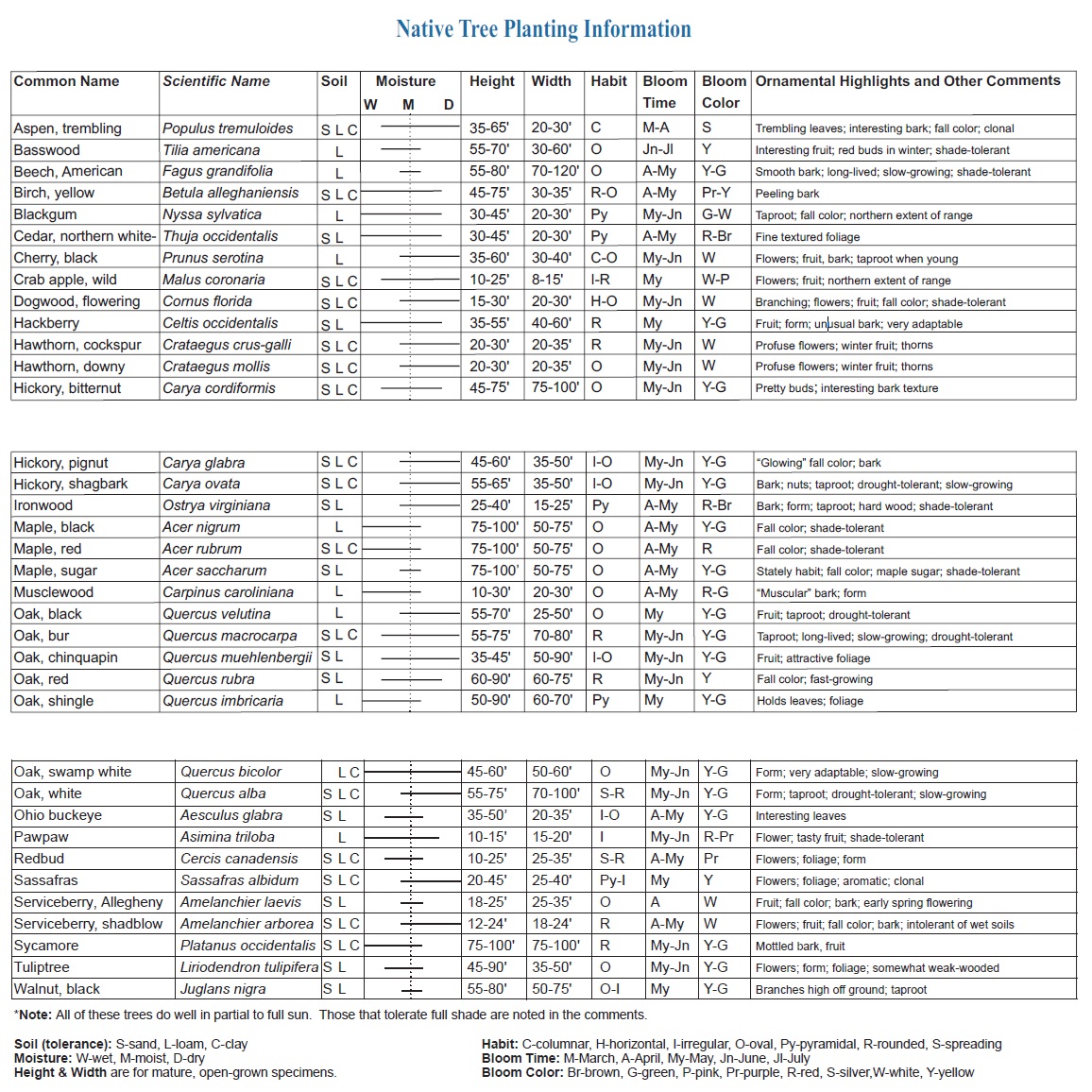 Each tree is linked to its profile at the Lady Bird Johnson Wildflower Center. All links will open in a new window.