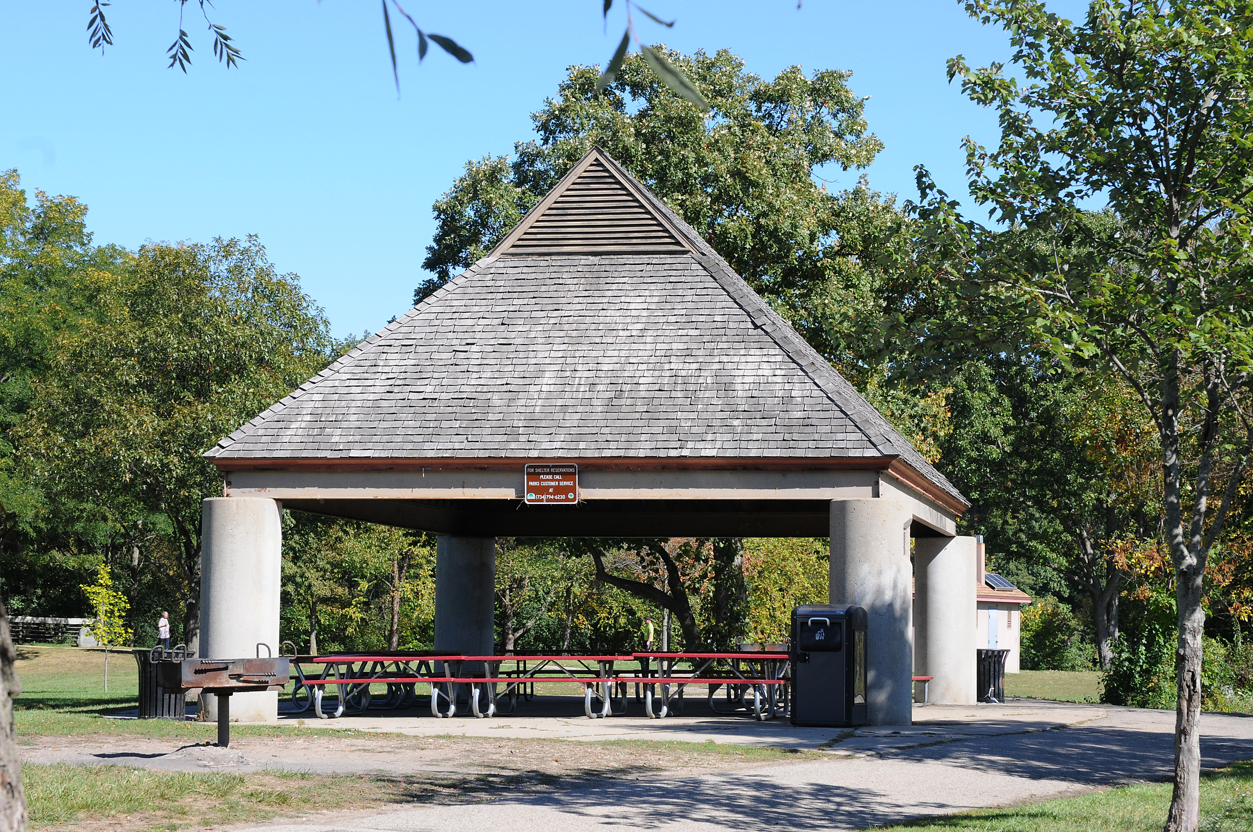 Closer to parking lot and playground; grills and compostable restrooms nearby. No electricity available. Approximate capacity is 50 people. Gallup Park is located at 3000 Fuller Road, Ann Arbor MI 48105. Please see the map of the park indicating which shelter is the Maas Shelter.