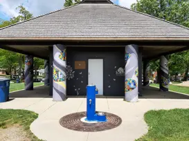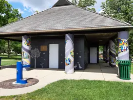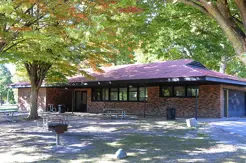 The shelter is located between the public restrooms. Small indoor room can be used for meetings or food and beverage set-up. Refrigerator and sink available for use. Key deposit required for entry. Approximate capacity is 15 people. Allmendinger Park is location at 655 Pauline Blvd, Ann Arbor MI 48103.