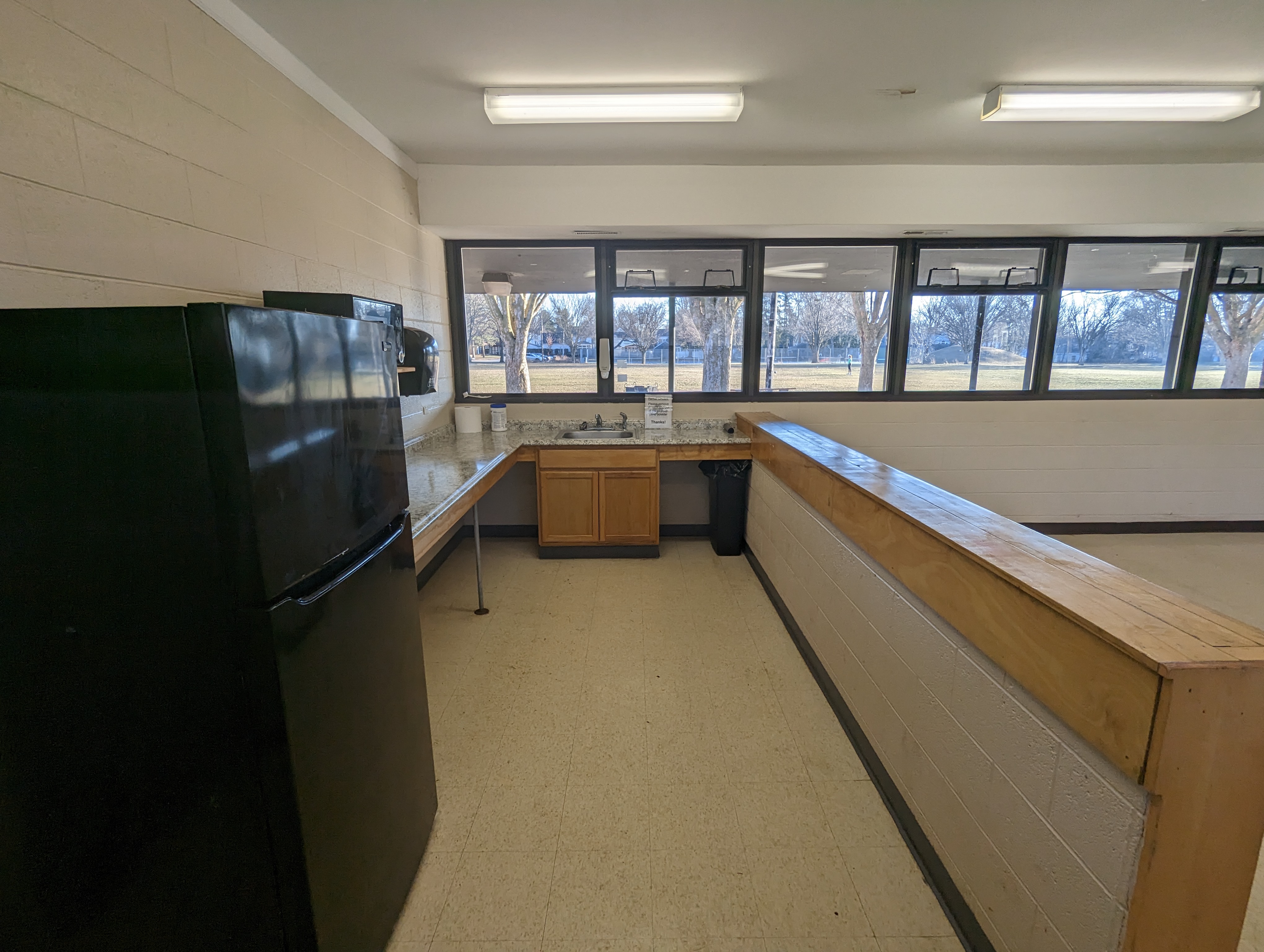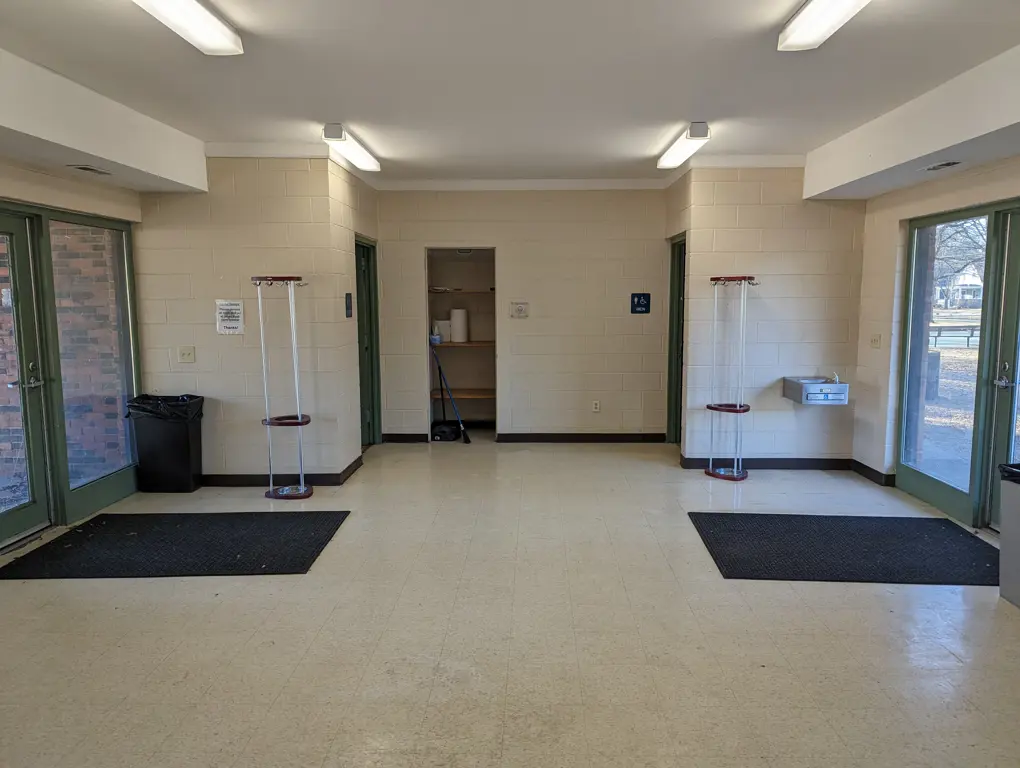 Located between the public restrooms. Small indoor room can be used for meetings or food and beverage set-up. Refrigerator and sink available for use. Key deposit required for entry. Approximate capacity is 15 people. Allmendinger Park is location at 655 Pauline Blvd, Ann Arbor MI 48103.