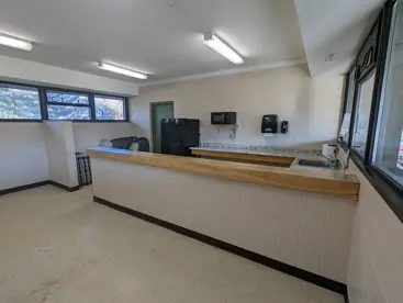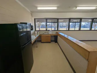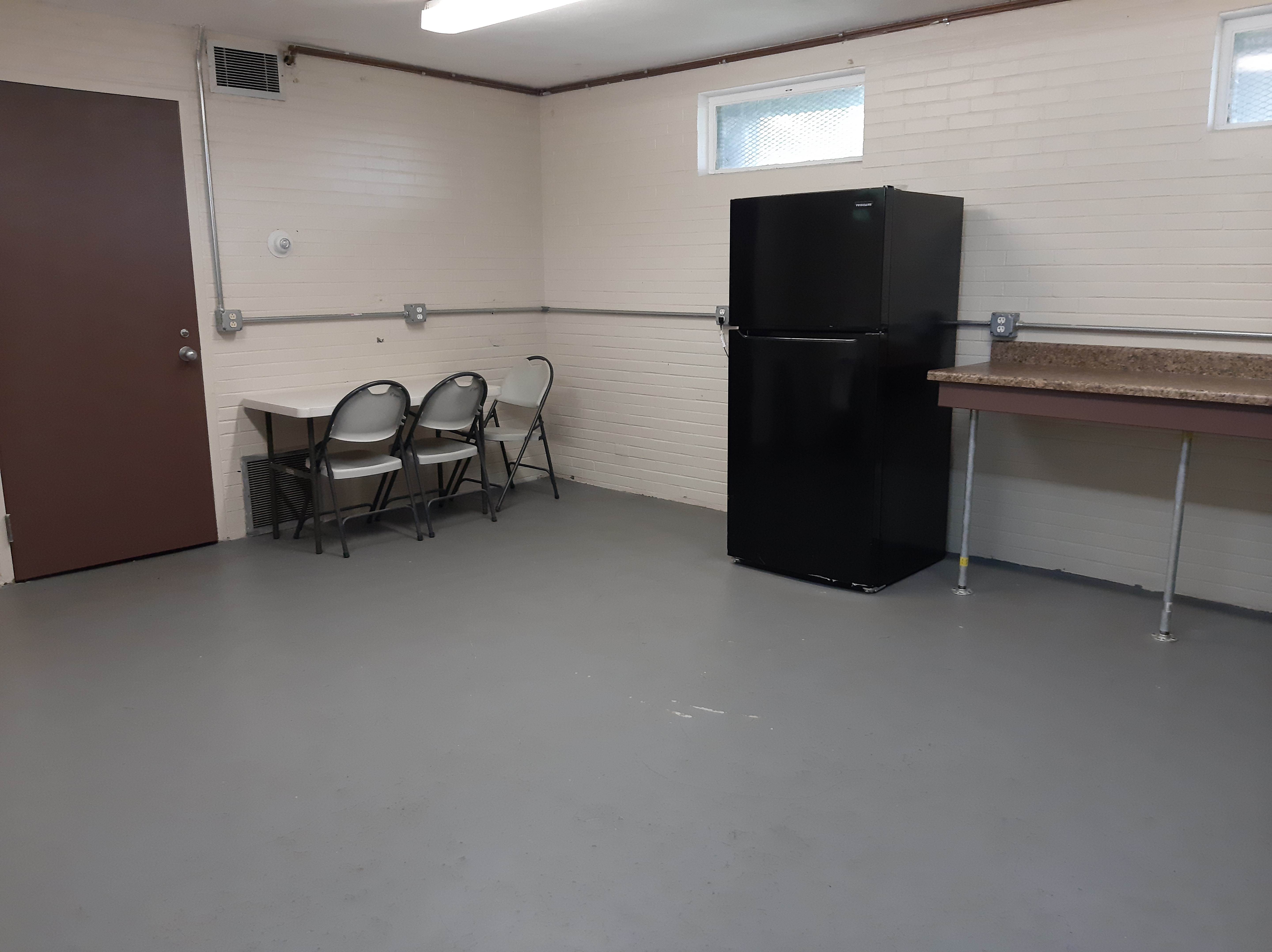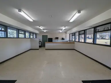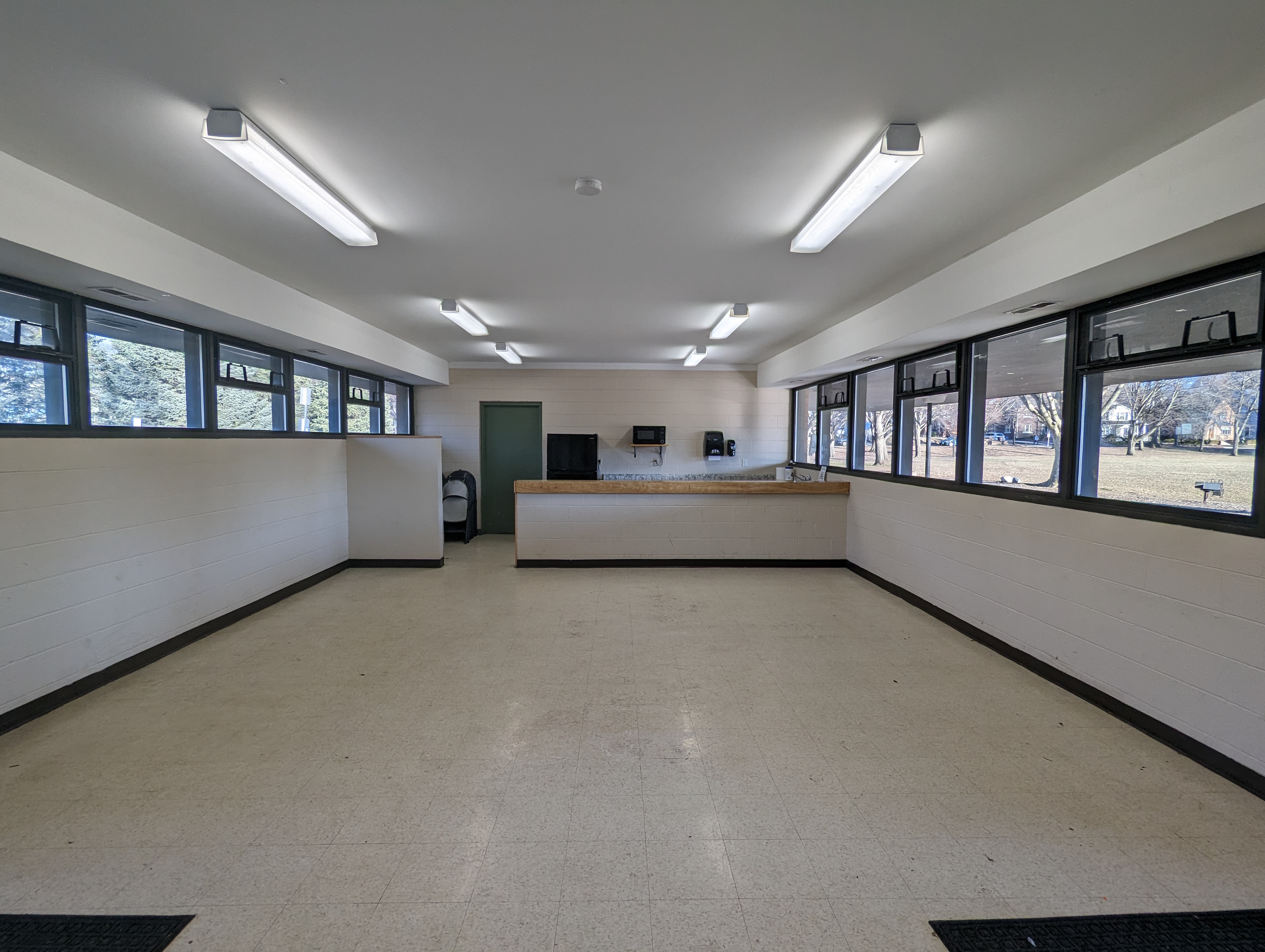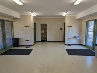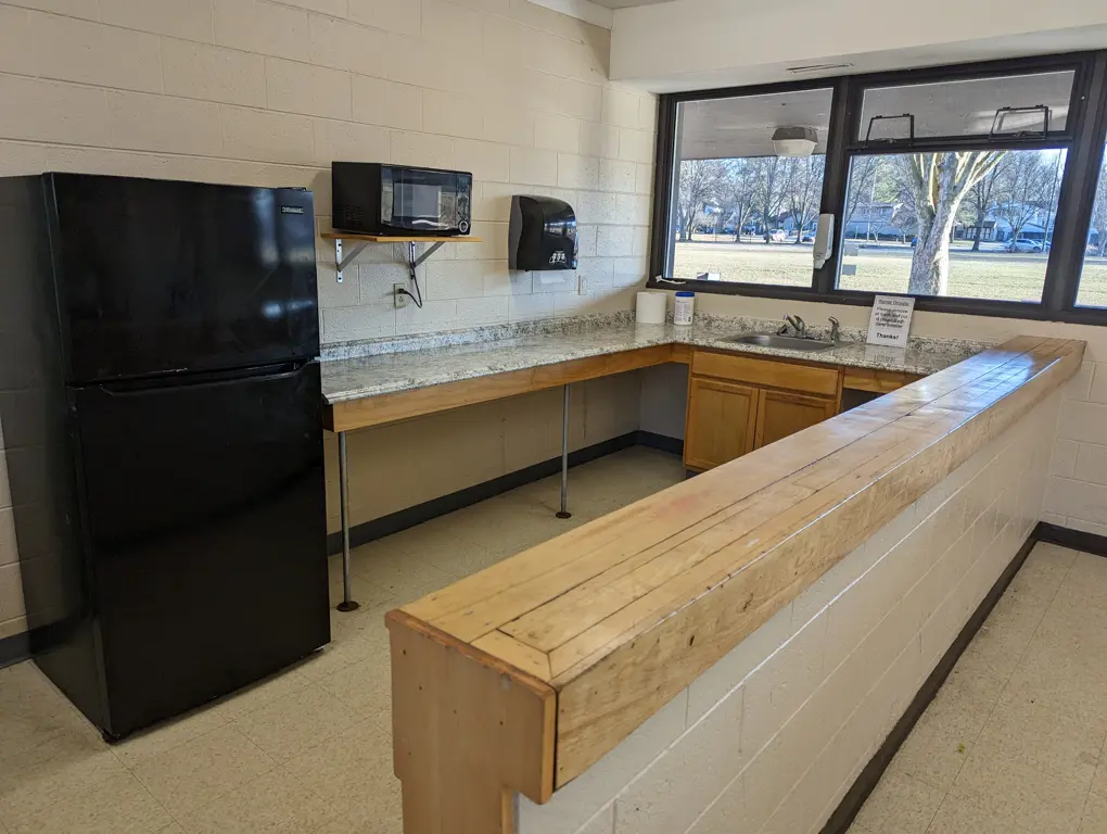 Indoor room with folding tables, chairs, refrigerator, microwave and sink. Requires a key deposit for entry. Outdoor covered patio and grills nearby. Approximate indoor capacity is 40 people. Burns Park is located at 1300 Baldwin Ave, Ann Arbor, MI 48104.