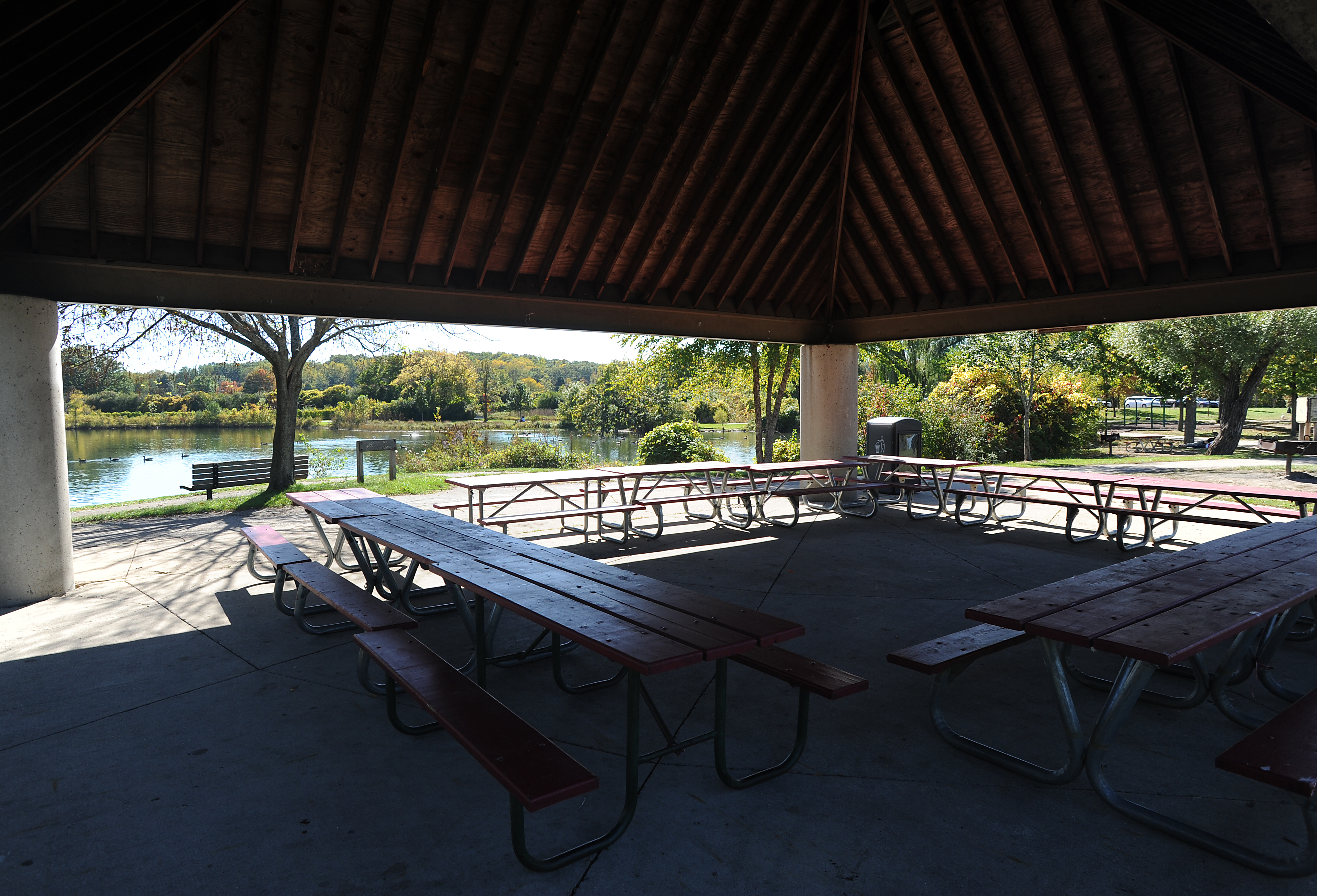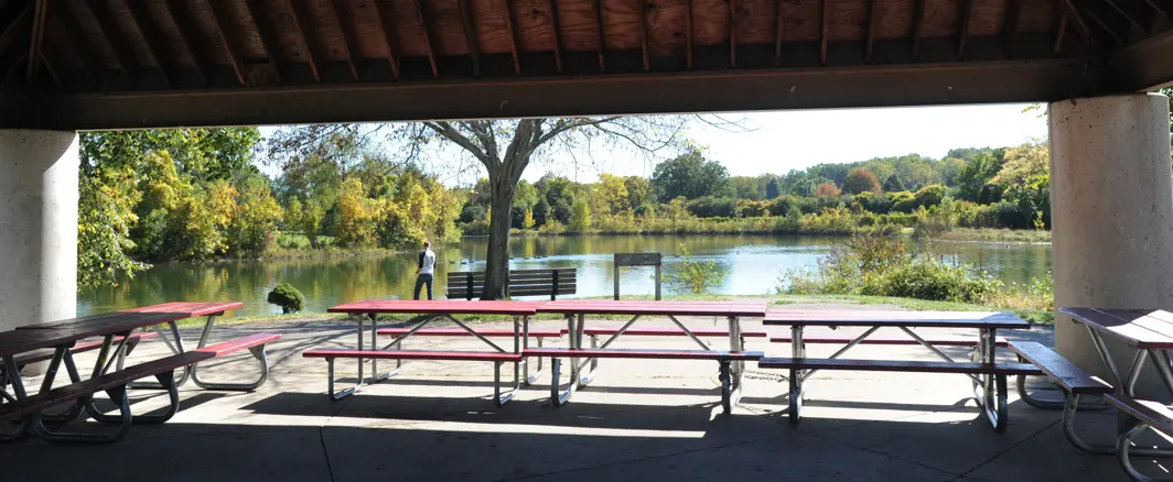 Small shelter located near fishing dock and fire circle. Grills and compostable restrooms nearby. Approximate capacity is 30 people. The picnic shelter and disc golf course at Bandemer Park are located at the entrance to the park at 2001 Whitmore Lake Road, Ann Arbor MI 48105.
