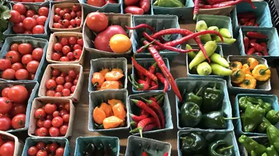 Includes asparagus, beans, beets, broccoli, brussels, cabbage, cauliflower, corn, cucumber, eggplant, garlic, kale, kohlrabi, leeks, lettuce, muskmelon, onion, peas, peppers, potatoes, pumpkins, shoots, spinach, summer squash, sweet potatoes, swiss chard, tomatoes, watermelon, winter squash, zucchini.