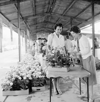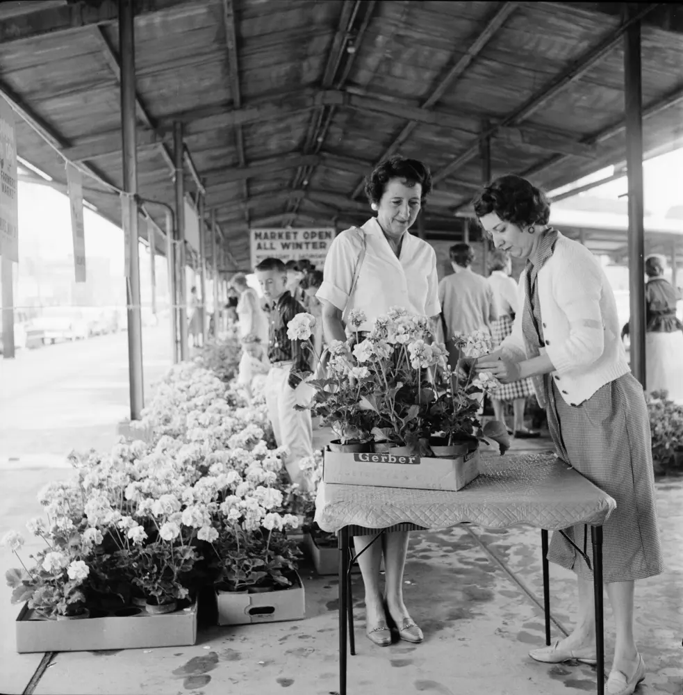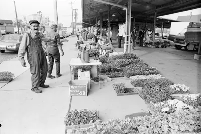 Once they had secured a spot, many stayed up all night, or close to it, getting ready for the market. Dieterle’s wife, Luella, used to spend the night picking flowers, a flashlight under her arm. Esther Kapp remembers harvesting until 1:30 a.m. and then rising again at 4 a.m. for the trip to town. Her three brothers stayed behind on the farm on Northfield Church Road to continue picking; while Kapp and her mother sold, her dad would drive back and forth all day to pick up fresh produce. (The Farmers Market Bounces Back, Grace Shackman, 1998)