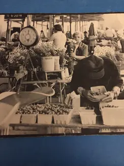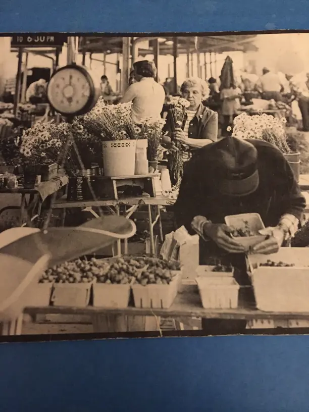 This is a photo of my mother, Olive Conant, arranging wild daisies bouquets. She and my father, Herbert, had a stall next to Alex Nemeth from 1952-1995. I spent many Saturdays at the market learning customer service and how to make change. My parents were also market managers in the late 60’s and early 70’s while still maintaining their stall. They sold vegetables, baked goods, flowers and crafts. My husband , Jim and I eventually took over the growing and selling. Cindi Conant Shake