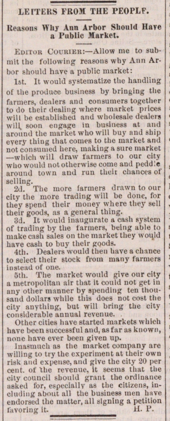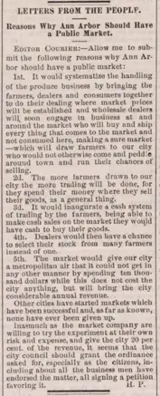 Letters from the People: Reasons Why Ann Arbor Should Have a Public Market