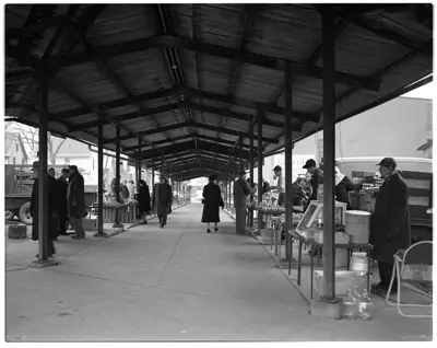 The Ann Arbor Farmers Market In Cold Weather, January 1951. Donated by the Ann Arbor News.