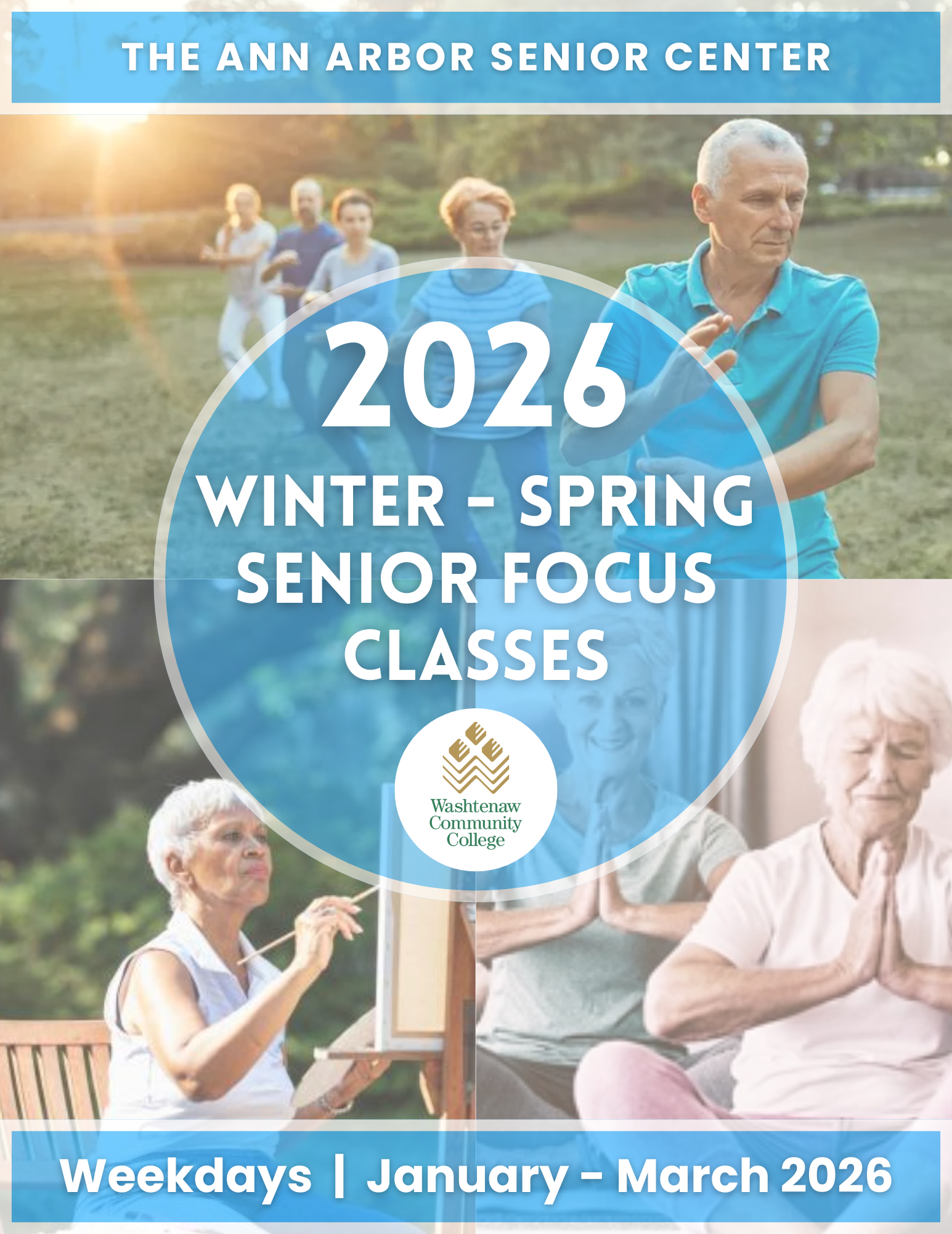 Senior Focus classes are offered in partnership with Washtenaw Community College for adults 65+ and are free of charge. The winter/spring class schedule is available below. Preregistration required. Space is limited. Please read carefully: Registrations will not be taken prior to 9 a.m. on Monday, Nov. 17. Starting at 9 a.m. there are 3 ways you can register for classes: