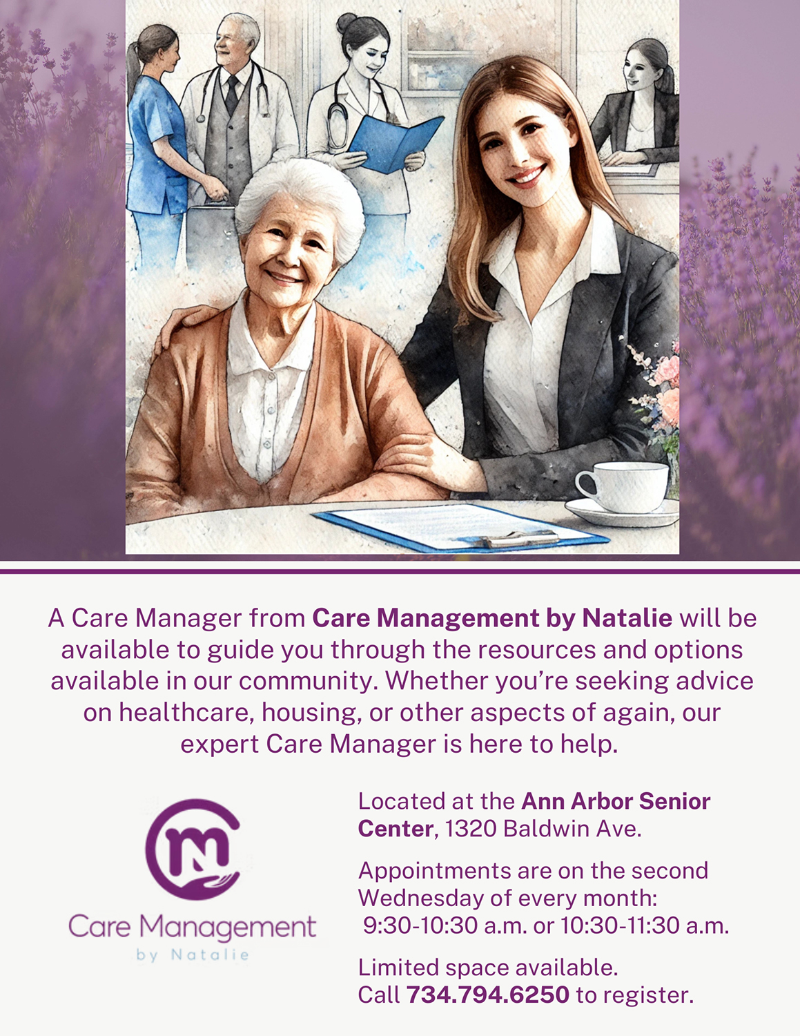 A Care Manager is a senior resources expert that can assist clients with: Discharging from the hospital, starting, or stabilizing caregiving structure in the home, remaining independent at home, choosing, and preparing to move to a senior community, creating medical stability or a new diagnosis roadmap, and support, education, and future planning. Together with Care Management by Natalie we can help find your right path through the aging process. Click here to learn more. Sign up for a free 1-hour initial consultation, free of charge. Located at the Ann Arbor Senior Center, 1320 Baldwin. Preregistration required, click links below to sign up online. Call 734.794.6250. Free of charge.