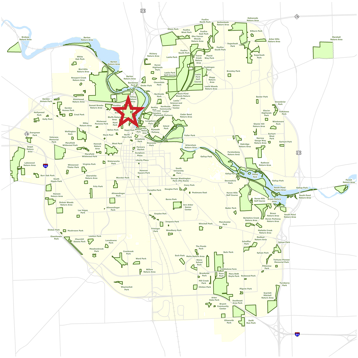 Bluffs Nature Area is a roughly 40 acre tract of land that is filled with nature, yet is close to the comforts of the city. View the Ann Arbor Parks and Nature Areas map for location context. On a glacially formed ridge, it is an important link in the corridor of natural areas surrounding the Huron River and supporting wildlife. There is a landfill and a recycling bin at the southern Sunset Road entrance.