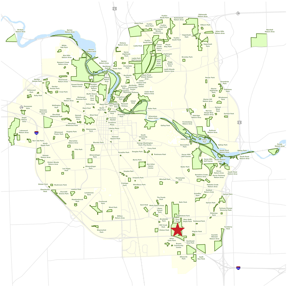 The city acquired the land in the early 1970's, which was known as the Brown property. In late 1970's the city of Ann Arbor entered a lease agreement with Washtenaw County to lease the land remaining from their Pittsfield-Ann Arbor drain retention pond construction site for use as a neighborhood park to serve the area bounded by Packard Rd, Platt Rd, I-94 and Stone School Rd.