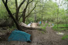 Tucked away in the natural area you will find the Tuebingen Bike Park. View the Tuebingen Bike Park rules for important safety information. View a map of the course. This bike park features a dirt/off-road pump track and several downhill dirt jump lines with doubles, tabletops, shark fins, hips, rollers and berms. A dirt jumper's playground, Tuebingen Bike Park draws riders from across southeast Michigan! Tuebingen also features a segment of downhill/uphill single-track MTB/XC trail connecting to Stapp Nature Area, and the park is near Traver Creek Nature Area, Leslie Park, Dhu Varren Woods Nature Area and several other parks. Please note this rider built course is for more experienced riders and is ride at your own risk.