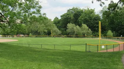 Visions of athletic fields danced in the heads of the park board and city alike when creating West Park. A 'West Park Time Line', a document in Parks Department files, summarizes developments in the park 1908-1995. Baseball and tennis were in play within two years of West Park coming into being.Two ball diamonds were constructed right away. Rules were posted and soon a bleacher was built. Within five years land was exchanged for more space behind the backstop. Many tennis courts were built in the early years of the park. One clay tennis court appeared in 1910, courts grew to three in total in 1914, five in total in 1928. The first paved tennis courts, two asphalt courts, entered the scene in 1965.