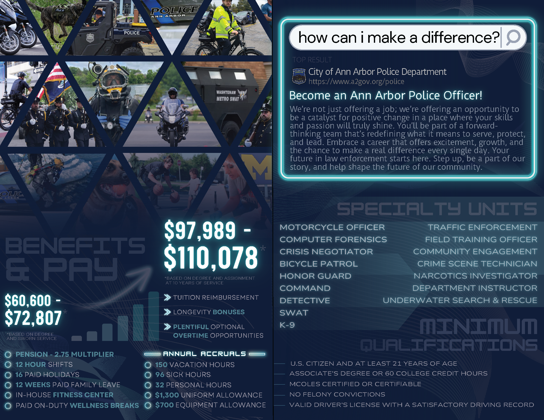 Do you want to be notified when career opportunities are available with the Ann Arbor Police Department? Learn how to get hiring alerts right to your inbox (PDF)!