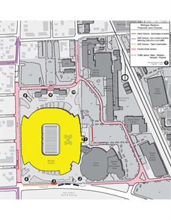 - Closure of westbound right turn lane of East Stadium Blvd onto South Main Street just south of Michigan Stadium