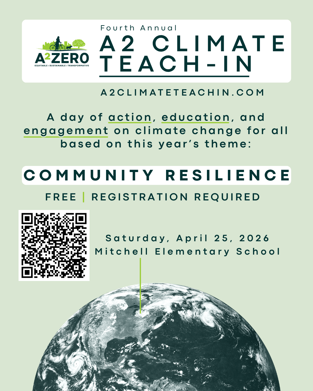 In the spirit of this original teach-in, the first annual A2 Climate Teach-In was hosted in May 2023, setting the precedent for this annually recurring event. Organized by members of the local faith-based community, this teach-in and those following it provided attendees a day of education, engagement, and action around climate and the local environment. Previous themes of this iteration of the Teach-In included: Looking Back to Look Forward, Build Your Climate Action Toolkit, and From Climate Distress to Climate Action.