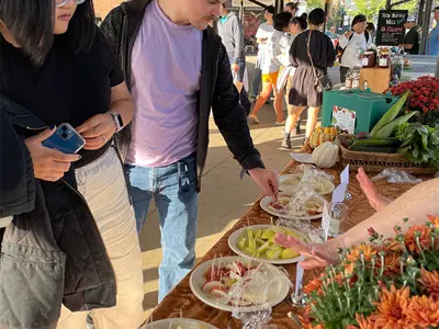 Stop by the Tasting Table to sample the freshest seasonal fruits and veggies from local farms! Discover the rich variety of flavors in our region's harvest, learn about the people behind the produce, and see what makes each veggie unique. Don't forget to cast your vote for your favorite bite of the day!