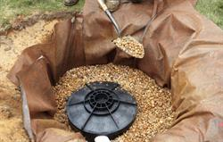 - The excavated hole, 3 to 12 feet deep, must be lined with filter fabric and backfilled with washed, crushed stone 1.5 to 3 inches in diameter.
